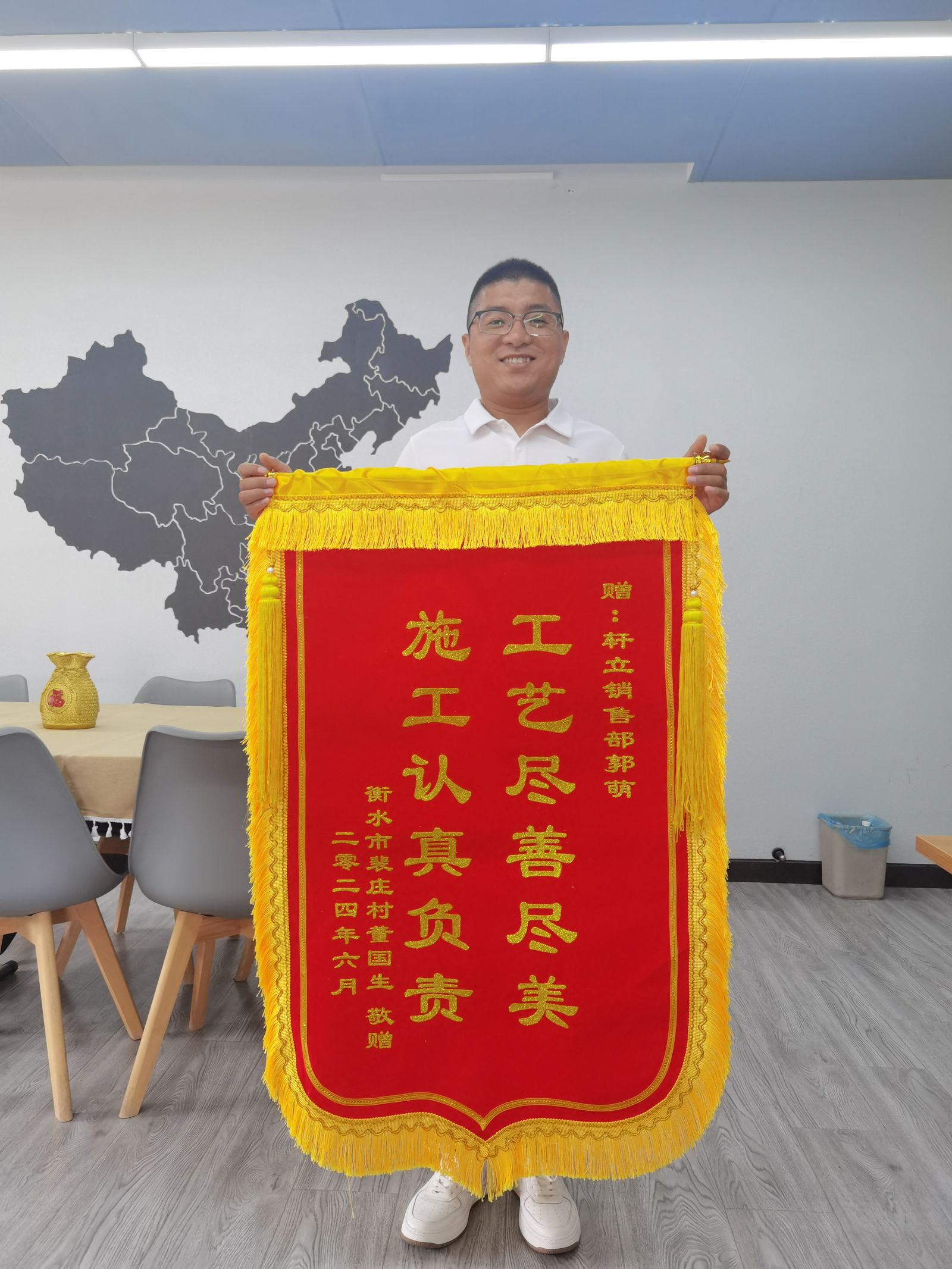 衡水故城縣輕鋼別墅竣工,業(yè)主董先生贈(zèng)予軒立房屋錦旗以表贊譽(yù) 榮譽(yù)從無(wú)意外,收獲匹配耕耘。也正是有很多像董先生這樣的業(yè)主對(duì)軒立大力支持與信任,成就了軒立前行的動(dòng)力。 查看更多 >>