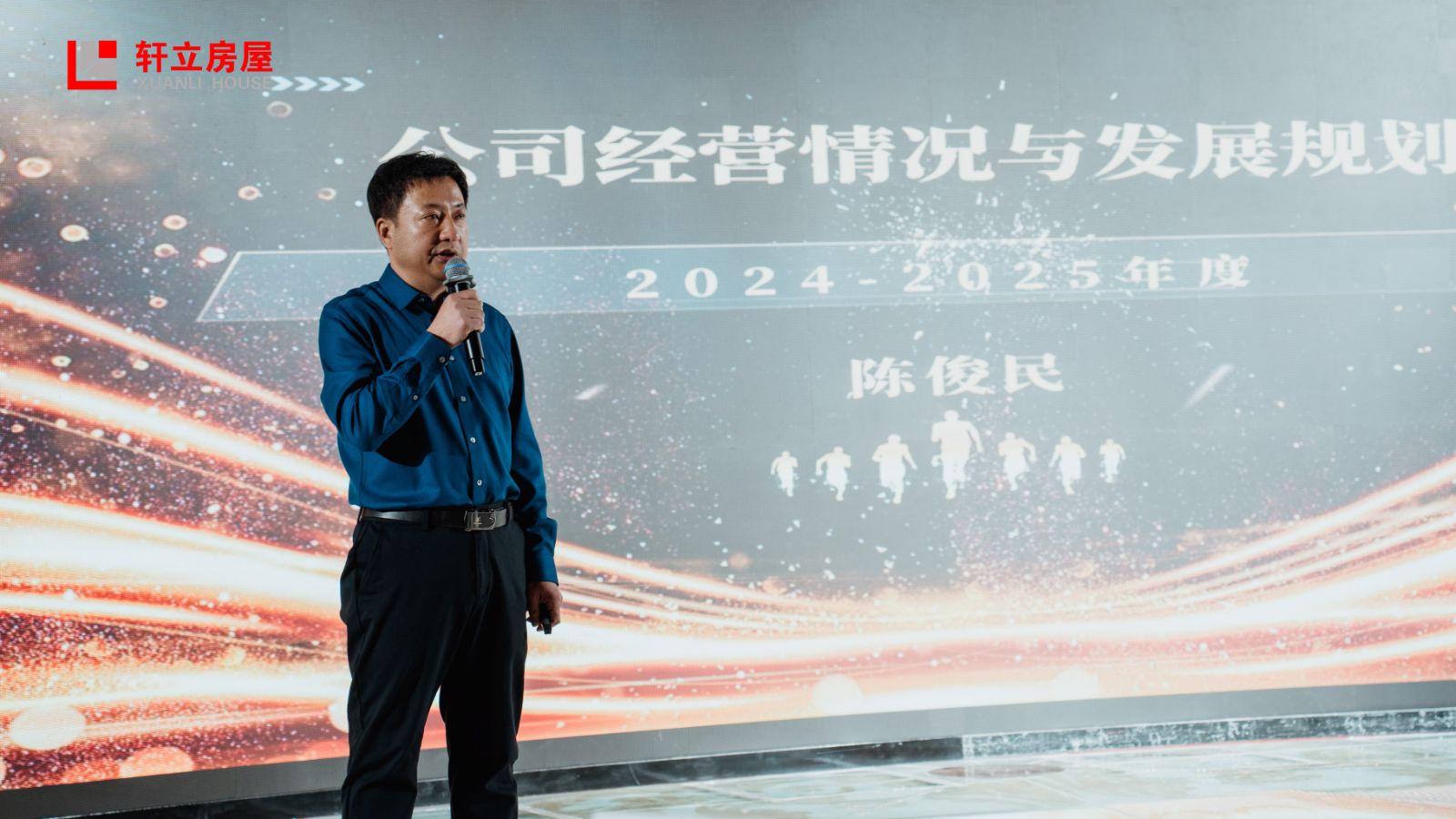 年會伊始,公司董事長陳俊民陳總發(fā)表了熱情洋溢的講話。他首先對2024年的工作進行了全面回顧,肯定了全體員工在過去一年中的辛勤付出和取得的顯著成績。陳總表示,軒立房屋能夠穩(wěn)步前行,離不開每一位員工的努力和貢獻。隨后,他展望了2025年的發(fā)展前景,提出了新的目標和愿景,激勵大家在新的一年里繼續(xù)攜手共進,共創(chuàng)輝煌。