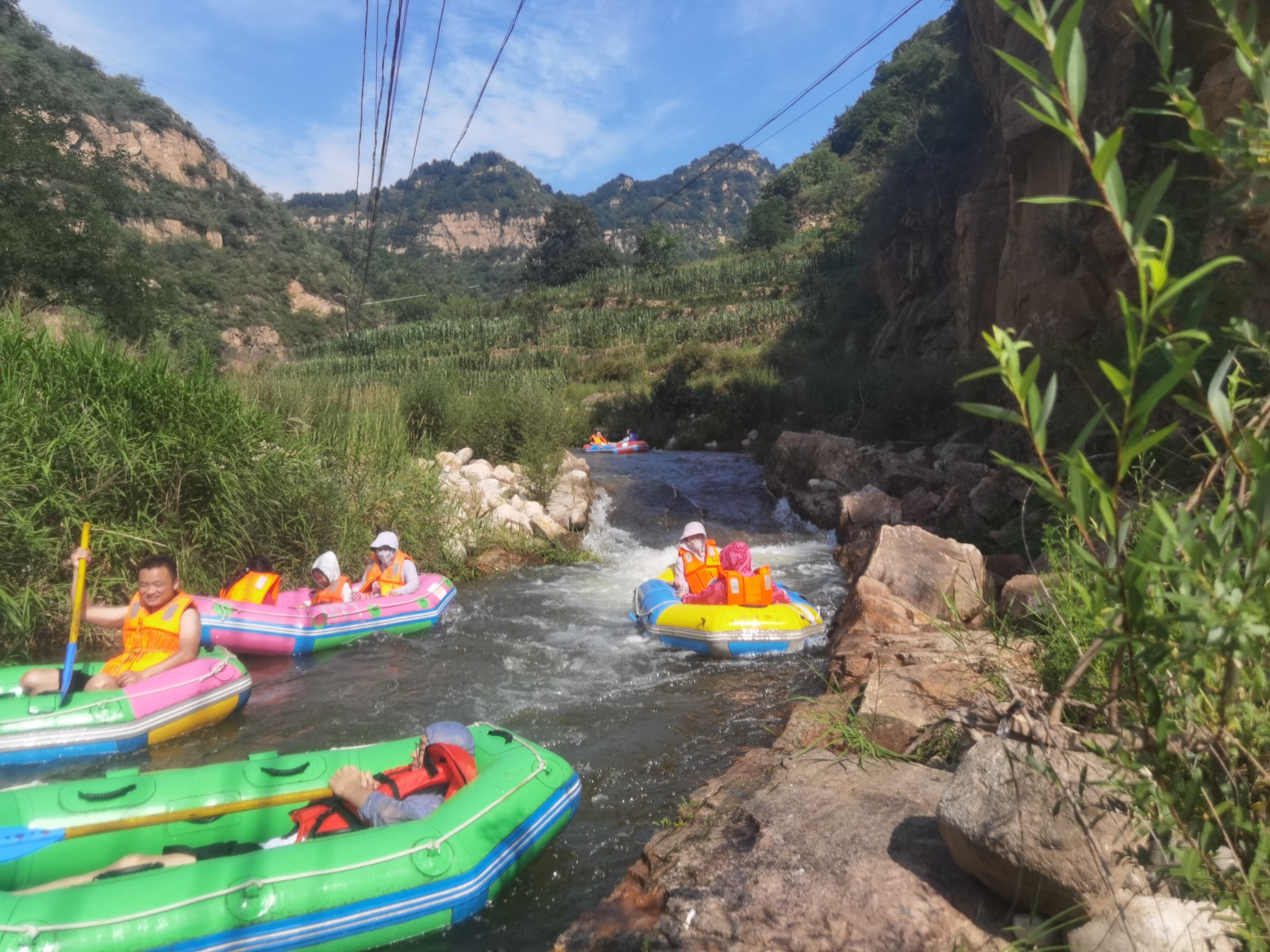 隨后大家來(lái)到農(nóng)家院附近就餐,大家津津有味地品嘗著地道的農(nóng)家菜肴,為下午緊張刺激的漂流活動(dòng)補(bǔ)充能量。一番小憩過(guò)后,就直奔蒼鷺?lè)迤?/span>景區(qū),大巴行駛在山間的小路上,沿途天朗氣清,碧空如洗,山巒聳翠,大家無(wú)不沉浸在這怡人的景色中,頓感心情舒暢。