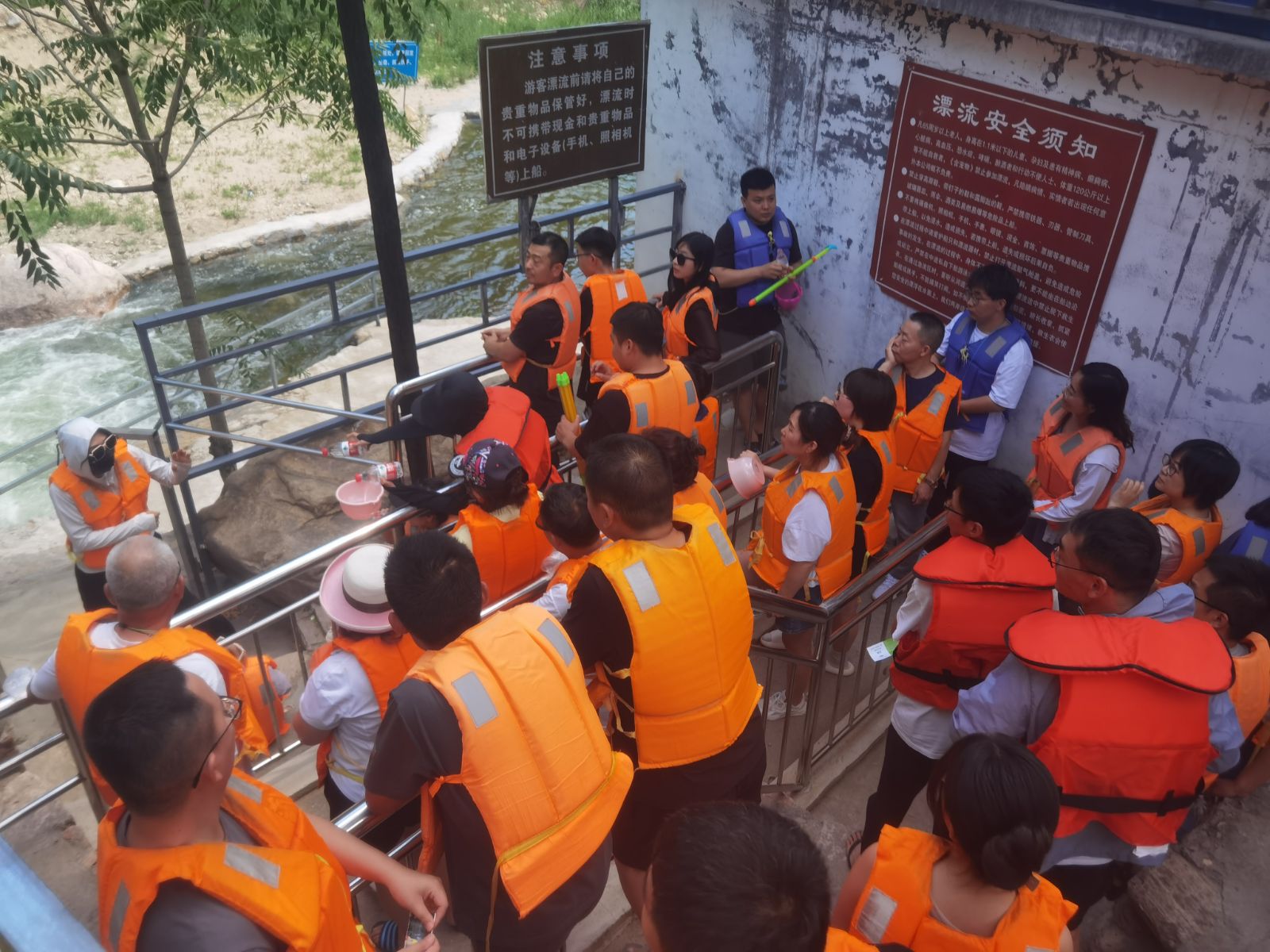 到達(dá)漂流區(qū)后,大家一個(gè)個(gè)摩拳擦掌、躍躍欲試,迫不及待想要體驗(yàn)一番。迅速戴好安全帽與救生衣,兩人一組,全副武裝,排隊(duì)等待緊張刺激的漂流之旅。